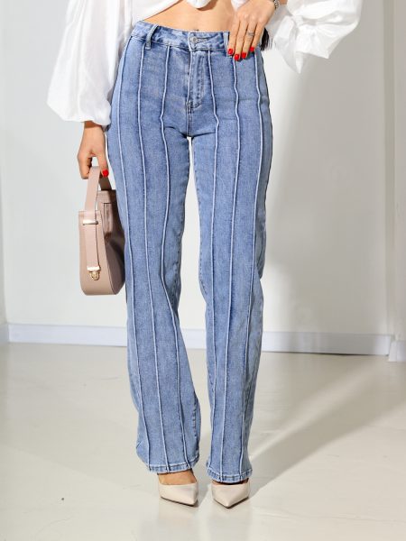 Zilas džinsa bikses ar atlocītiem galiem – 15893