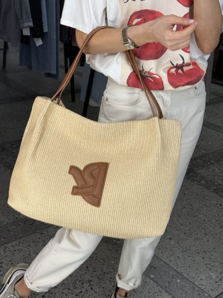 Bēša plāna d/a soma ar pītu ādas rokturi – 15758