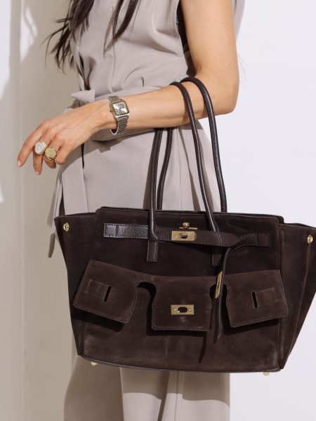 Brūna plāna d/a soma ar pītu ādas rokturi – 15760