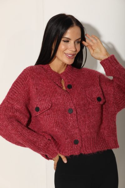Bordo adīta īsa jaka ar melnām pogām – 16165