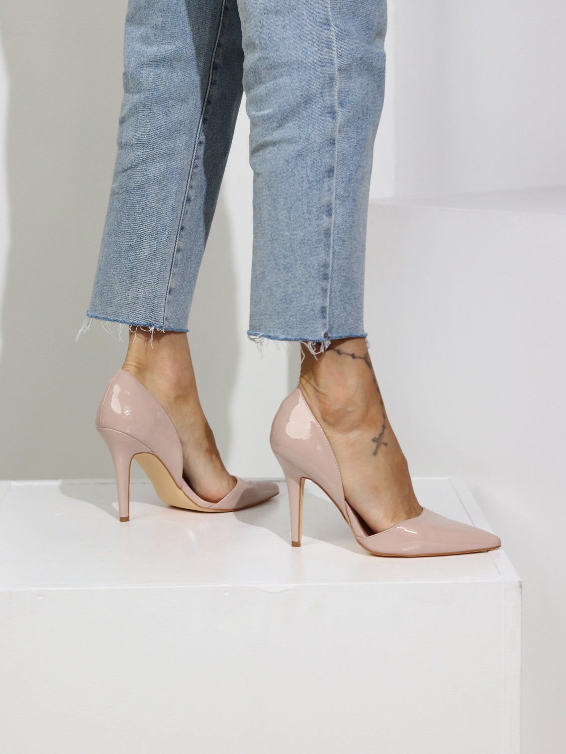 Klasiskas, lakotas kurpes uz augstu, smaklu papēdi, slēgtas ar smailu pungalu
