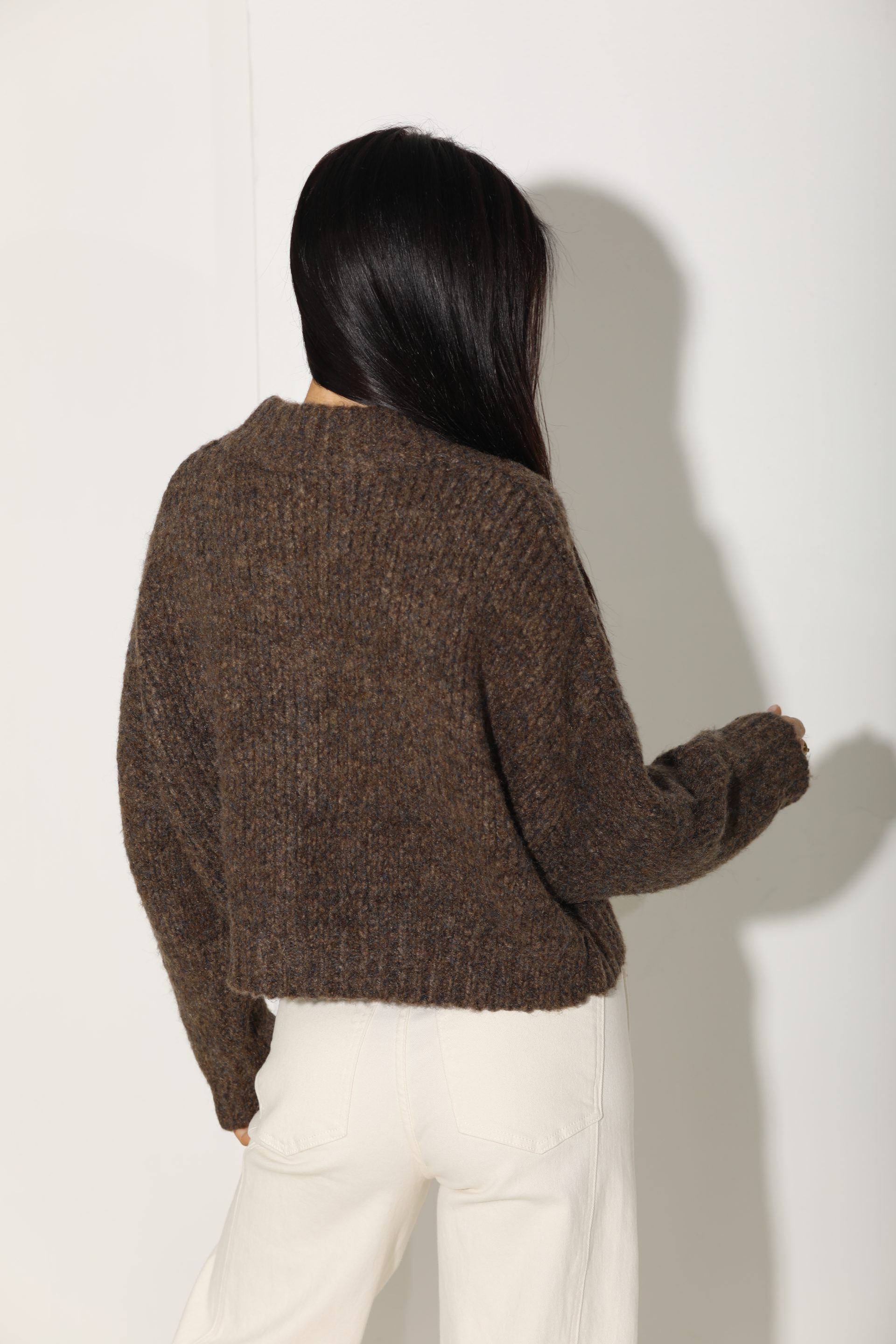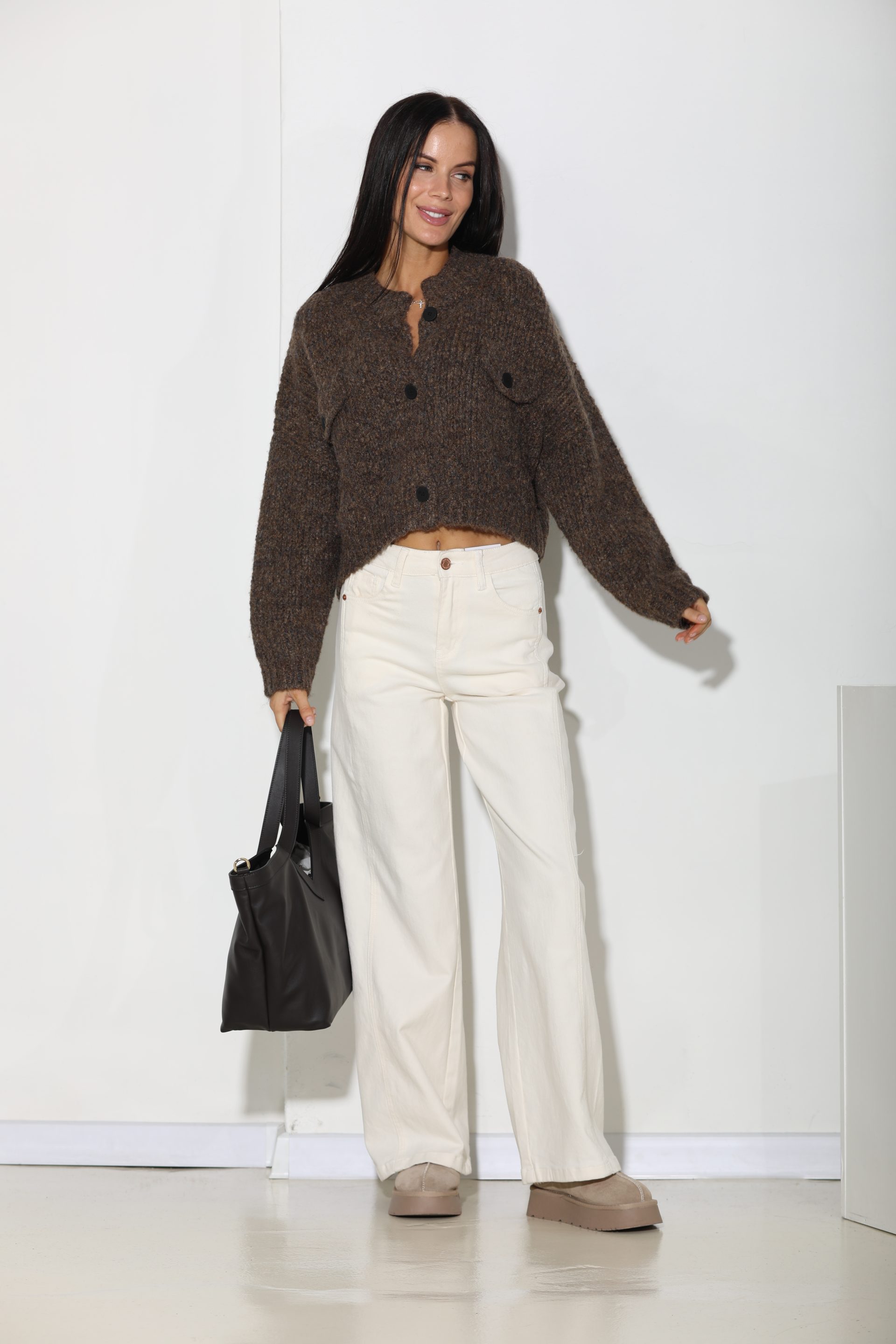 Brūna adīta īsa jaka ar melnām pogām – 16164