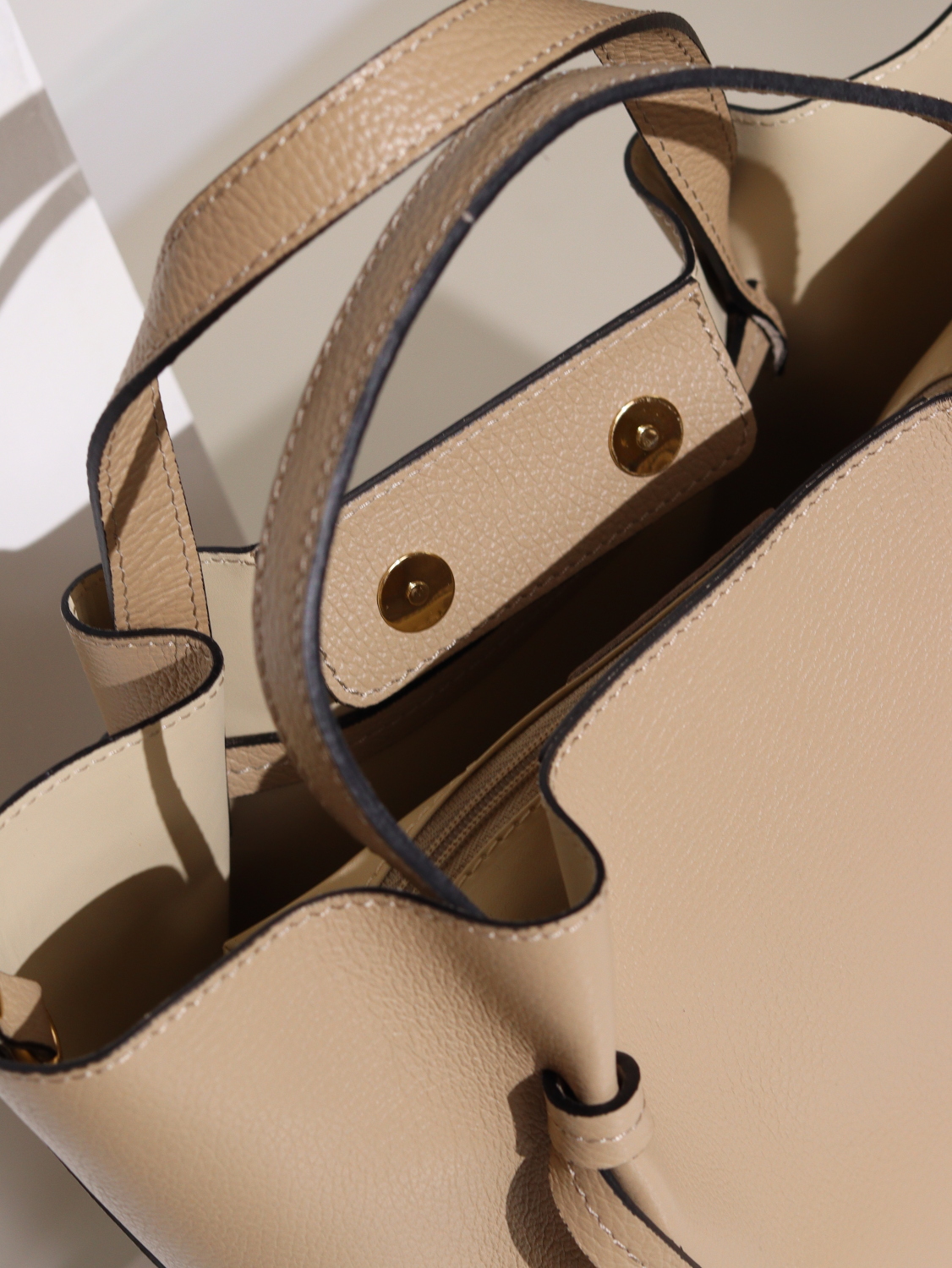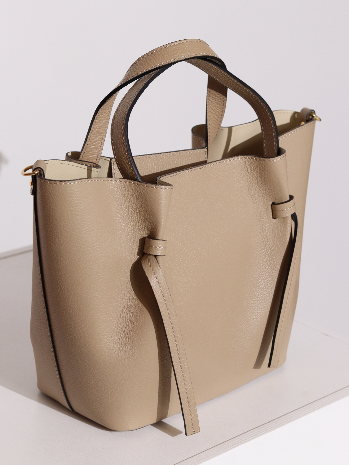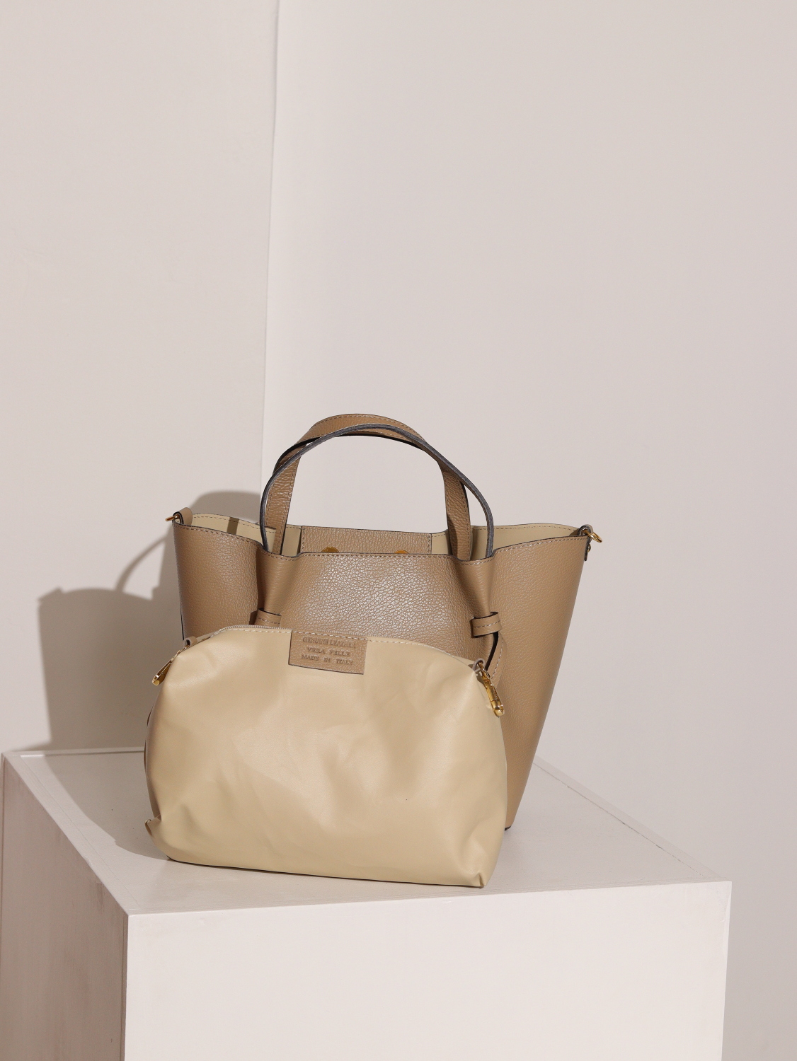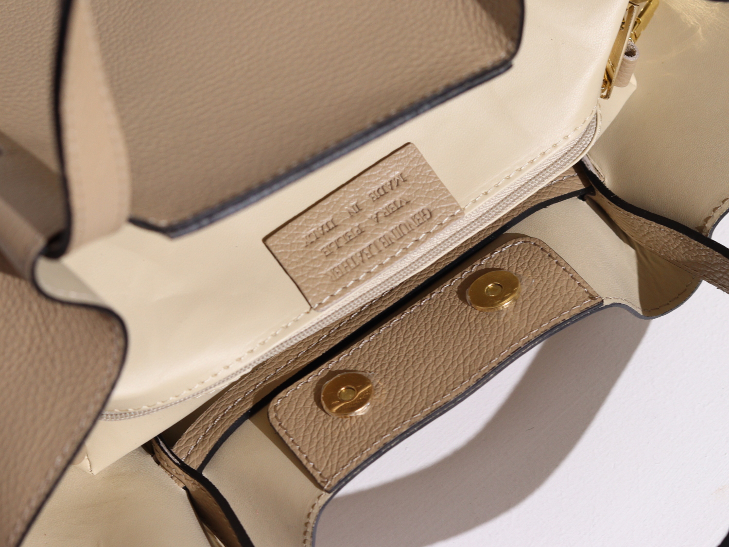 Dabīgās ādas, trapecveida soma ar divām iestrādātā lencēm, aizverama ar divām spiedpogām. Somas iekšpusē ir izņemama pieskaņotas krāsas , ar rāvējslēdzēju aizverams, vidēja izmēra maciņš.