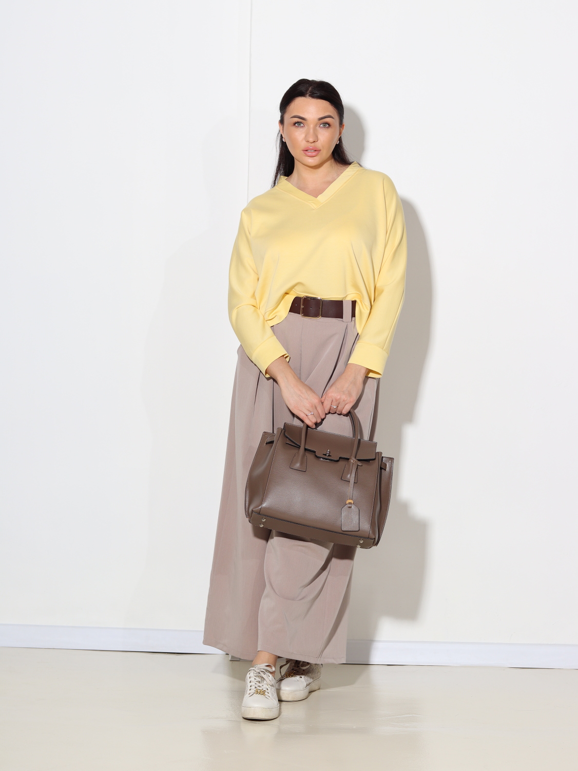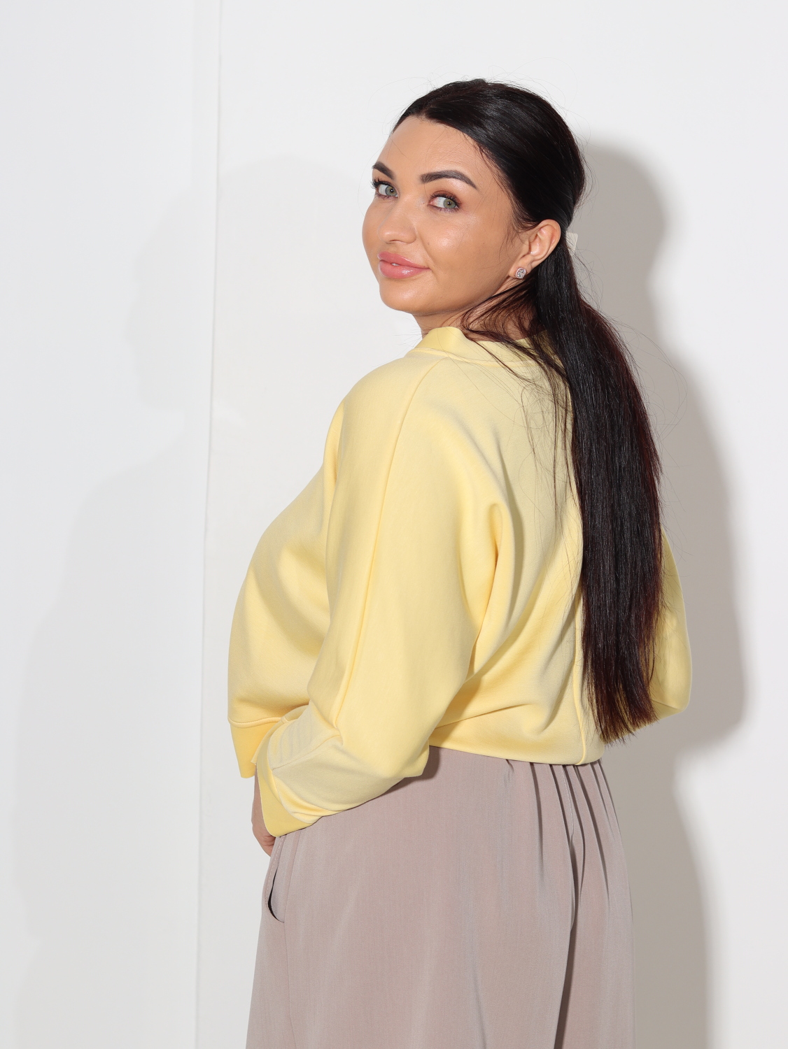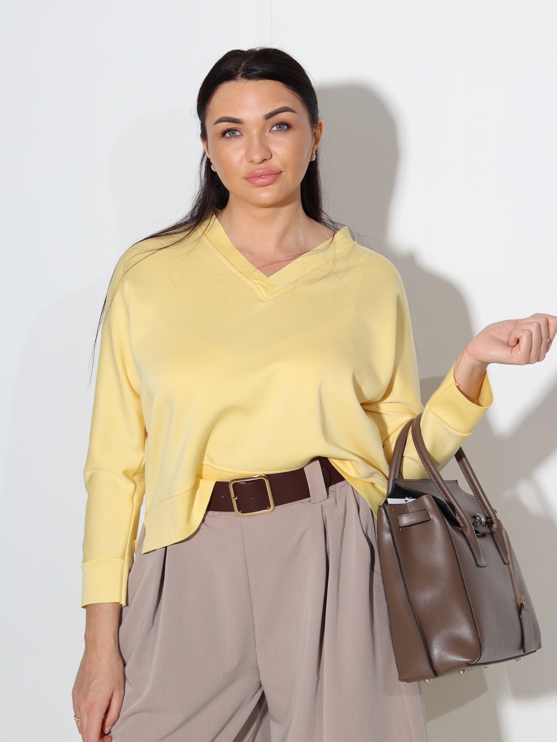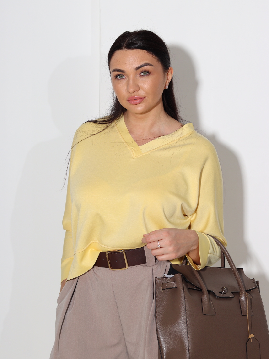 Dzeltens auduma tops ar ‘V’ veida kakla daļu – 14002