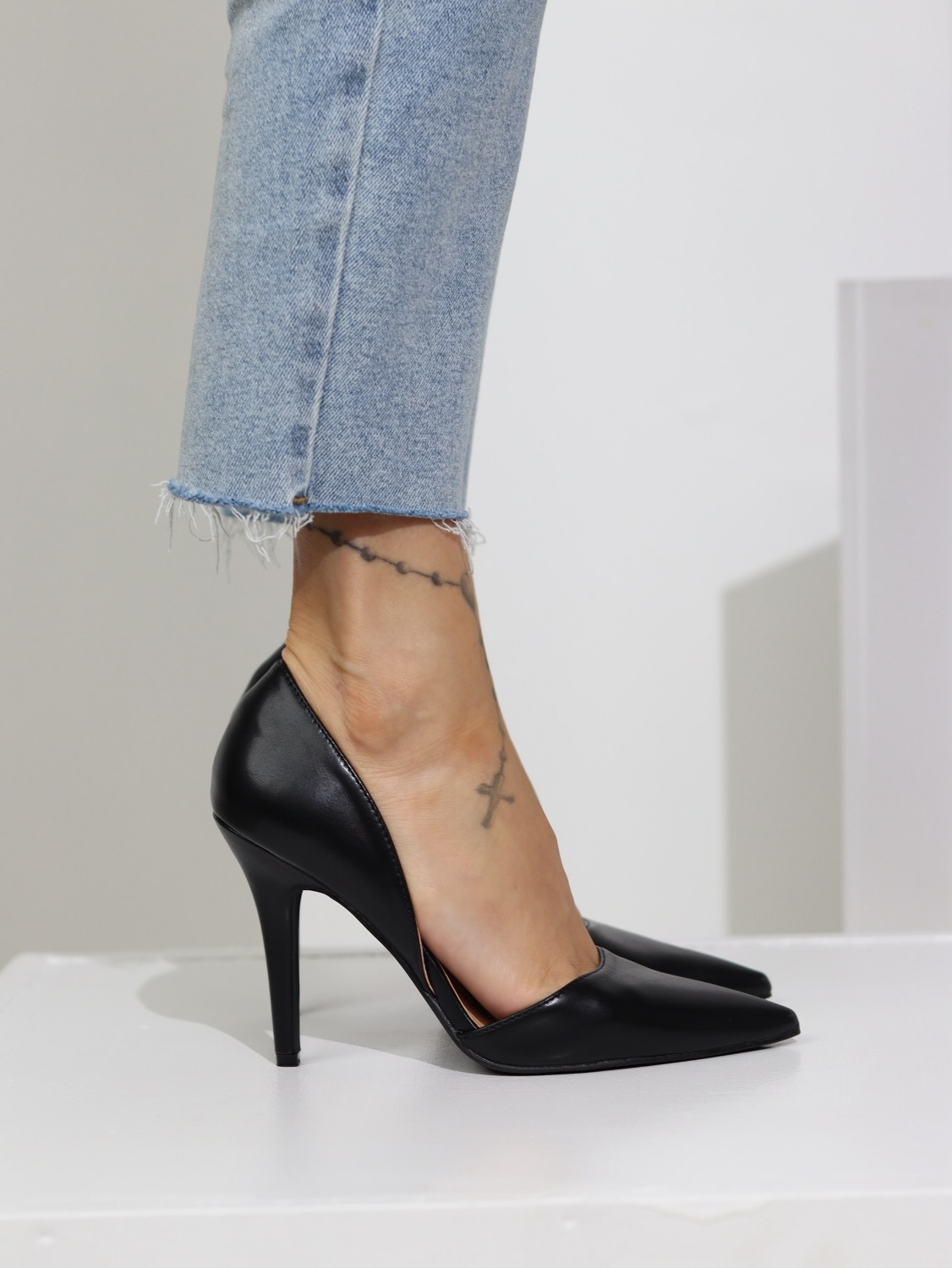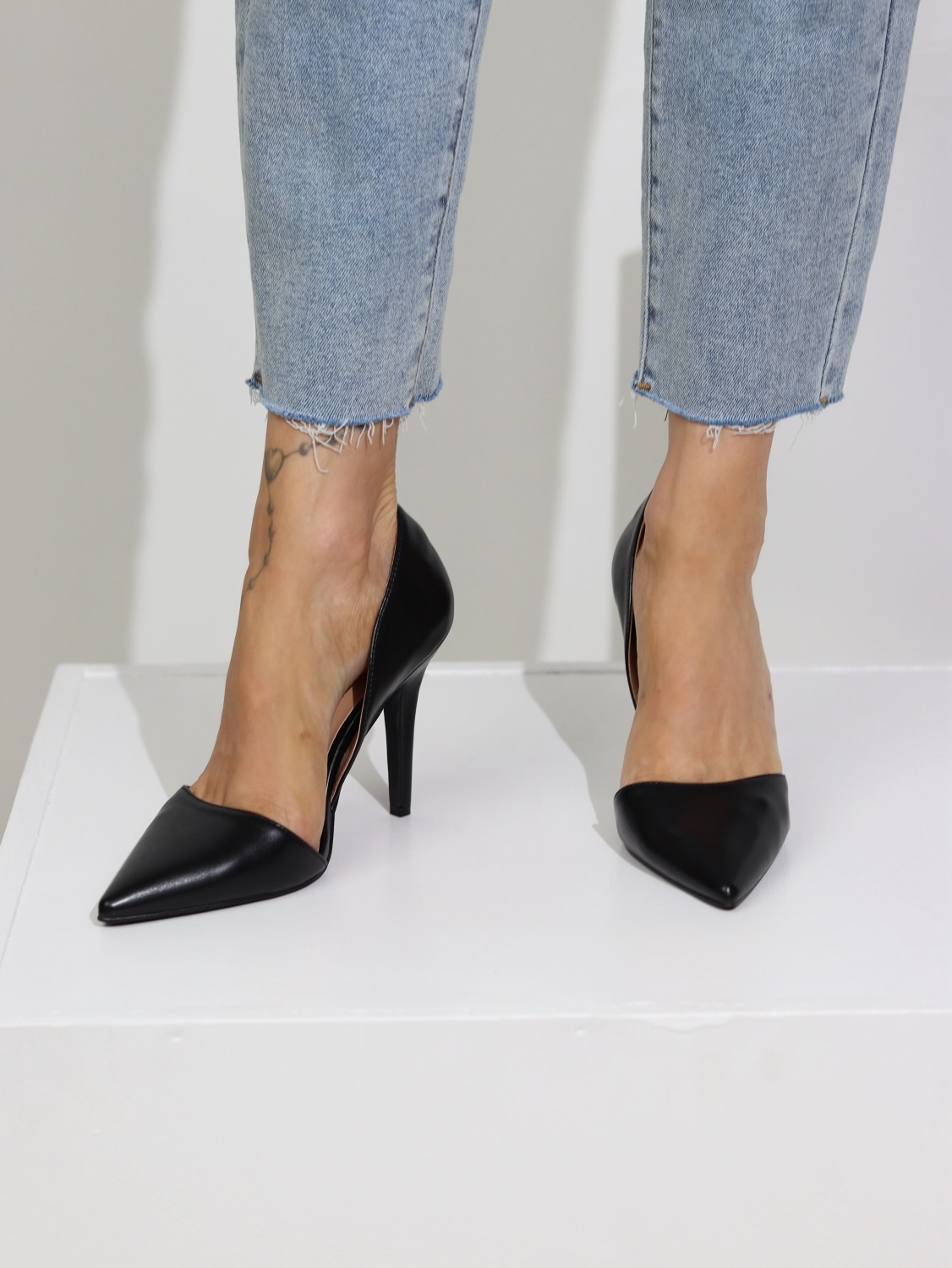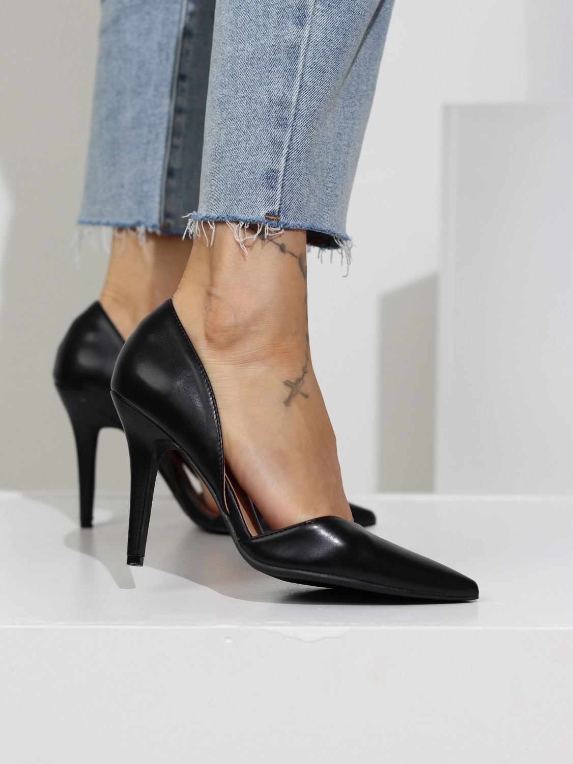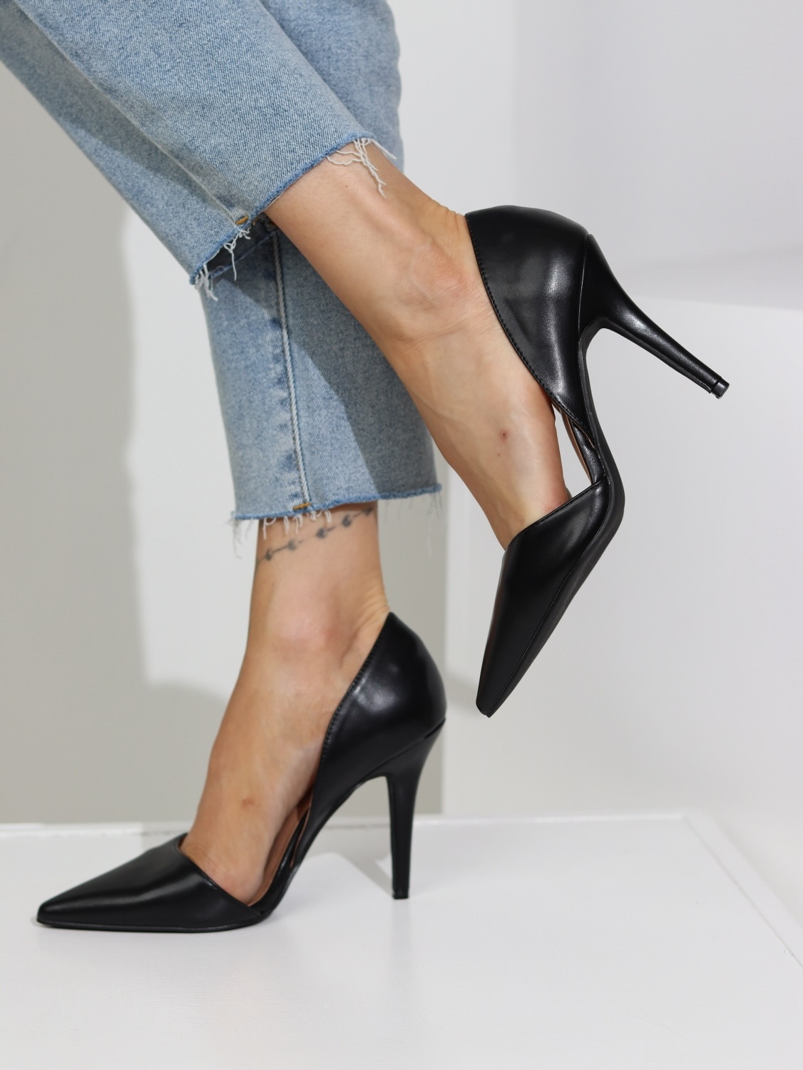 Klasiskas, lakotas kurpes uz augstu, smaklu papēdi, slēgtas ar smailu pungalu
