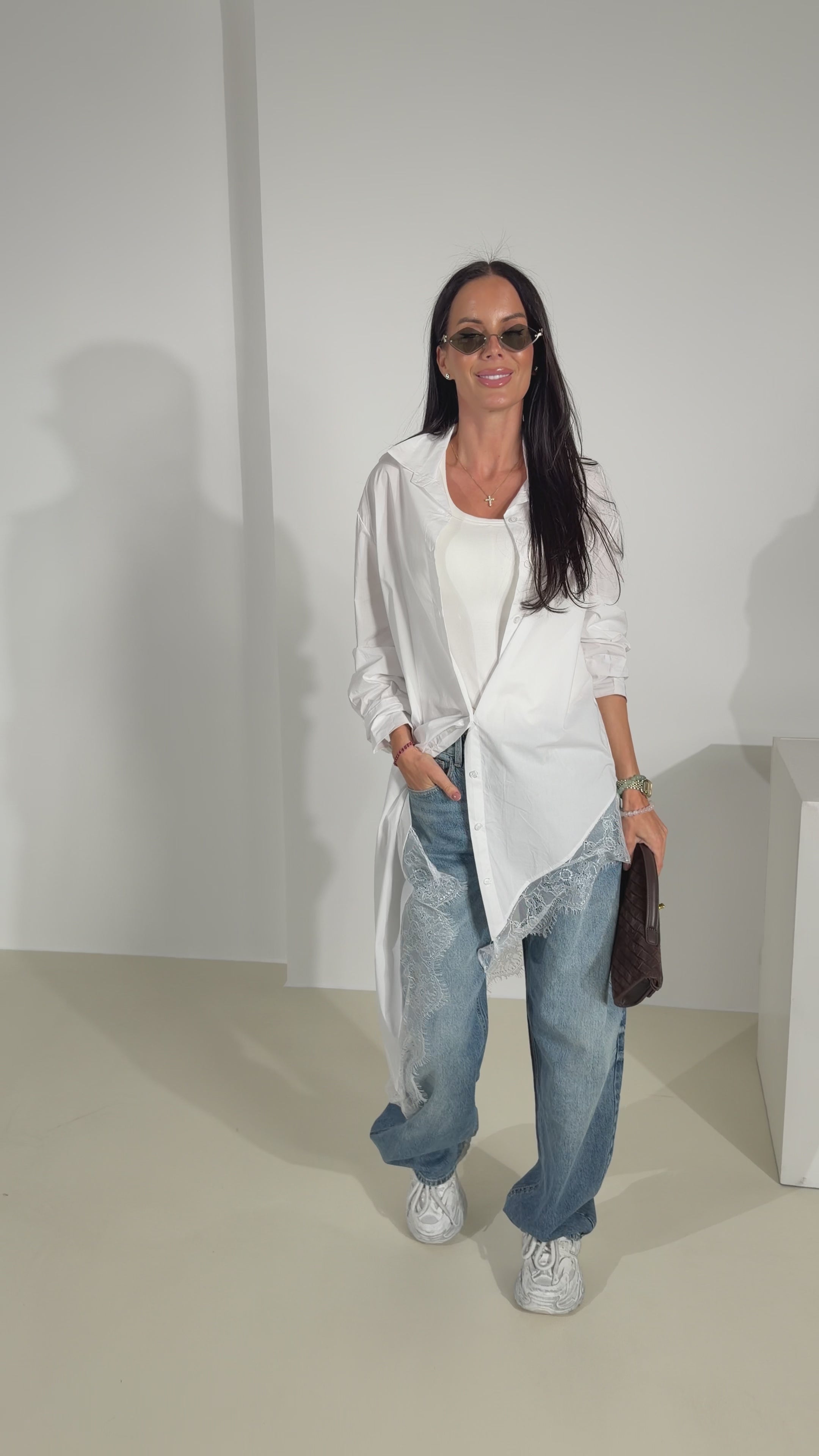 Balts krekls ar slīpu apakšmalu un mežģīni - 18138
