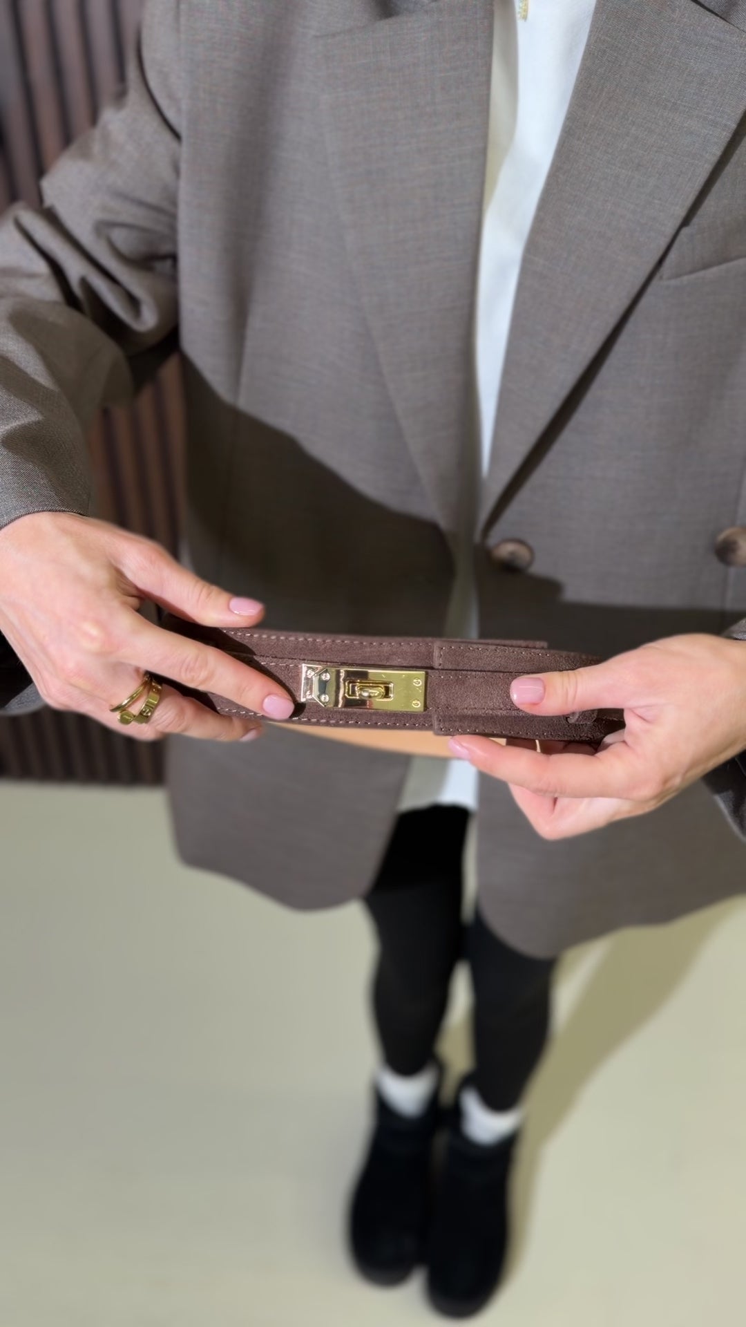 Brūna plata d/zamšādas josta ar zelta āķīša aizdari- 17862 Izpārdošanas hind€45,00 EUR