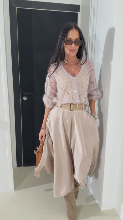 Gaiši brūni, midi, atlasa auduma svārki ar jostu – 18303