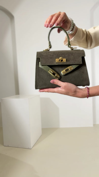Mini/ maza rokas somiņa ar zelta krāsas aizdari. Somiņai var uzlikt arī plecu lenci (garums regulējams).