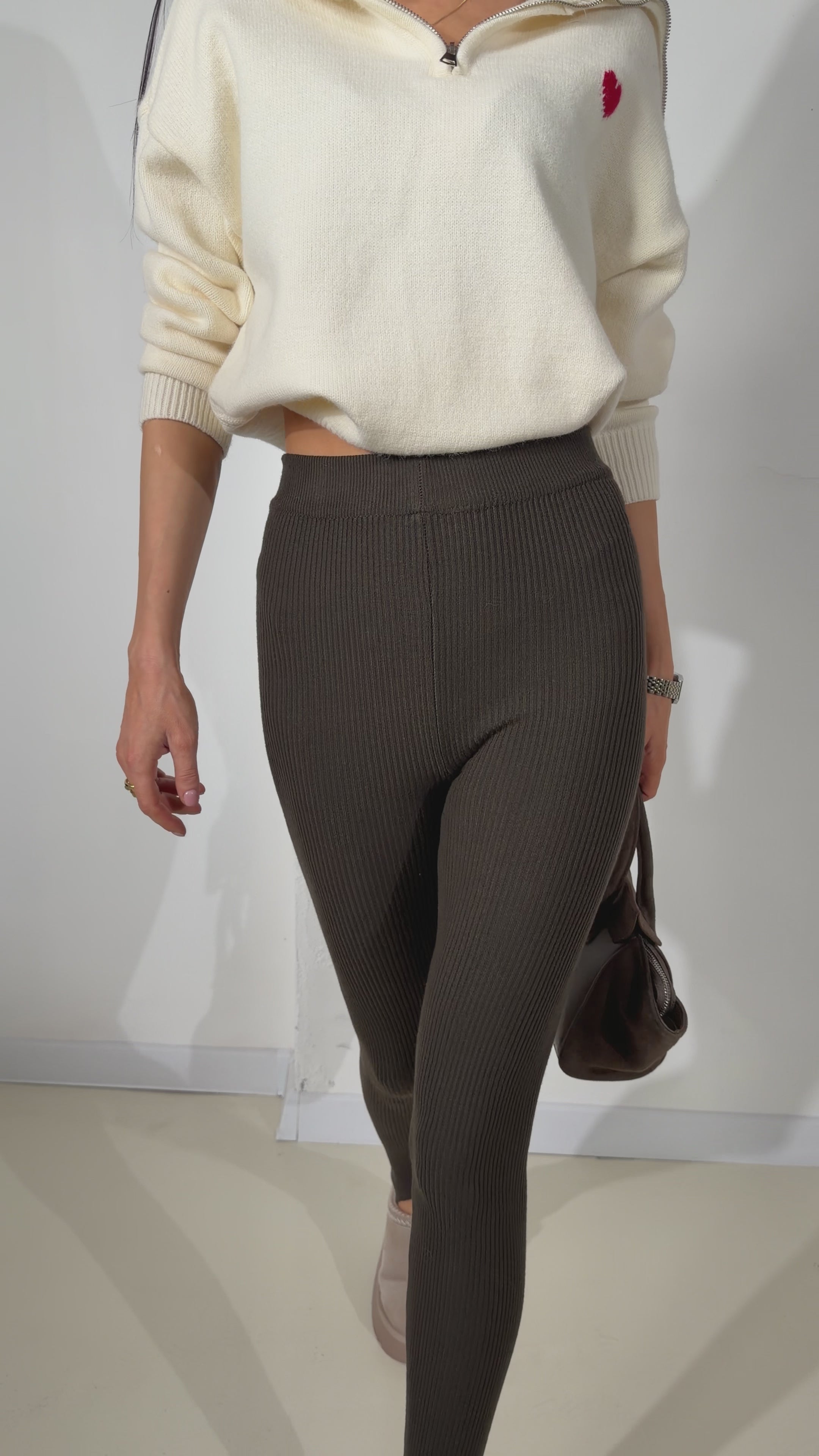 Zaļganbrūni adīti, elasti legingi ar koht papēdim- 17865