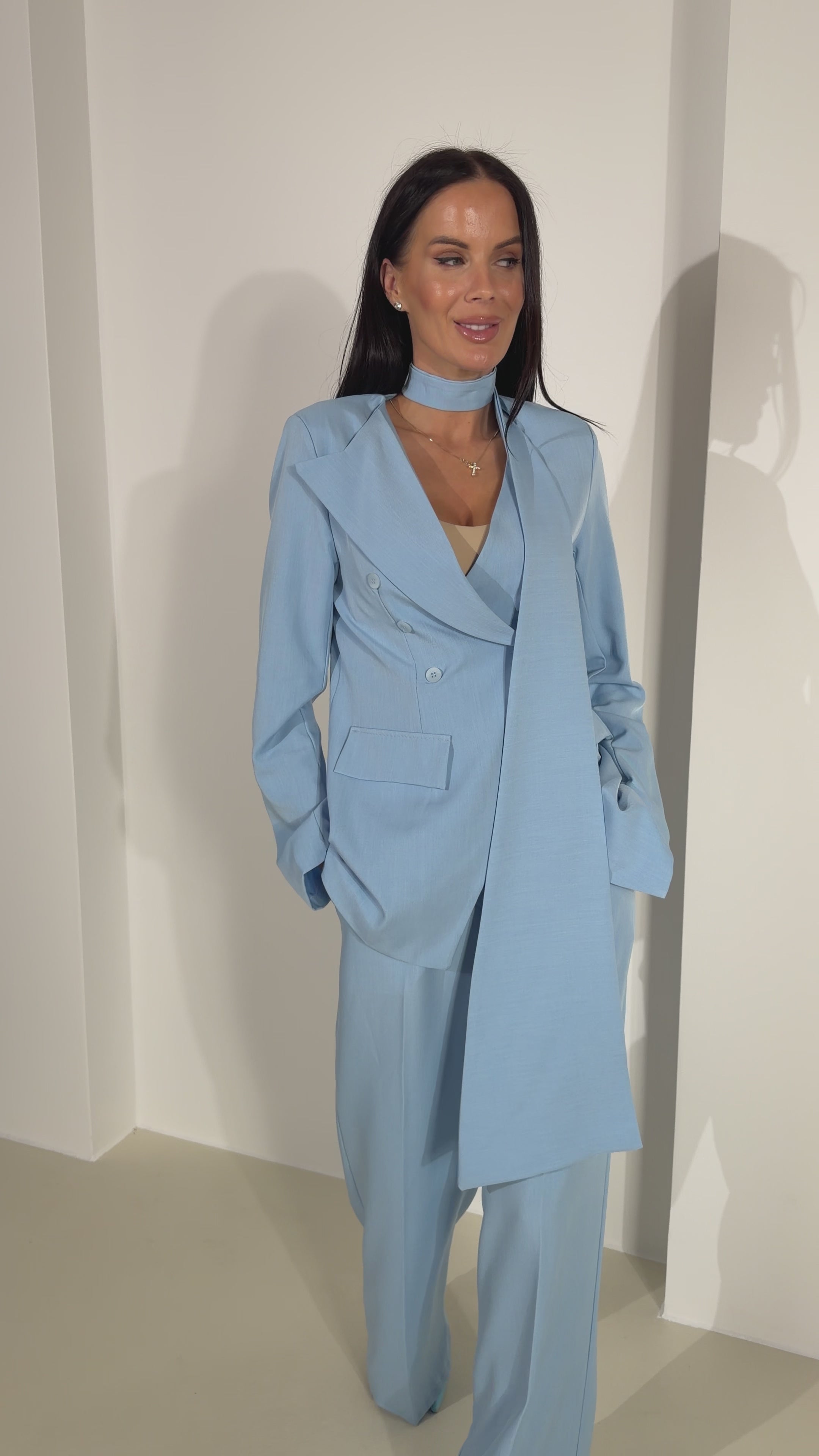Zils klassikaline komplekt ar pikendatud kaklasaiti - 18285