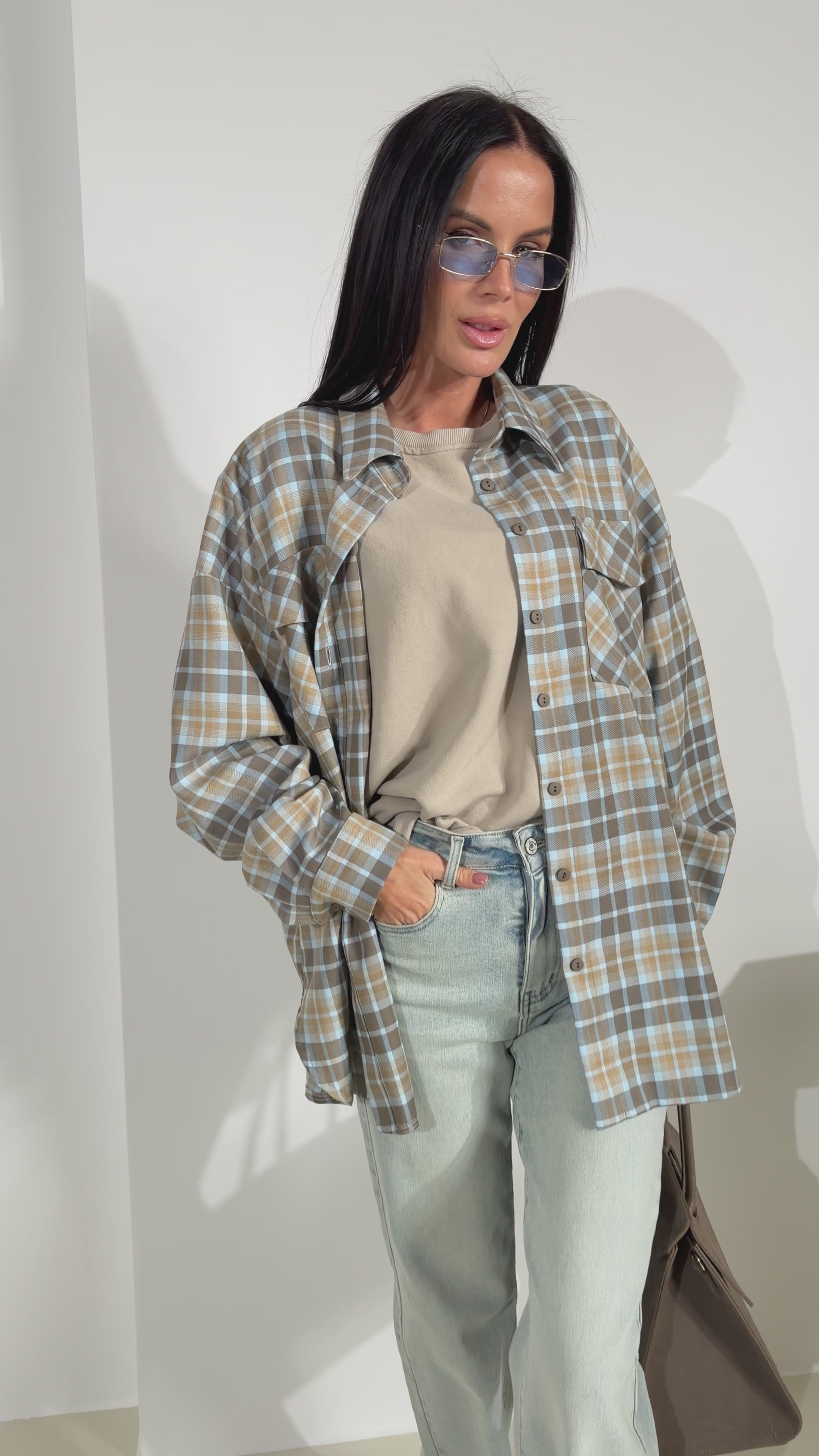 Zilas+ brūnas rūtiņas kreklid 'LUX' – 18100