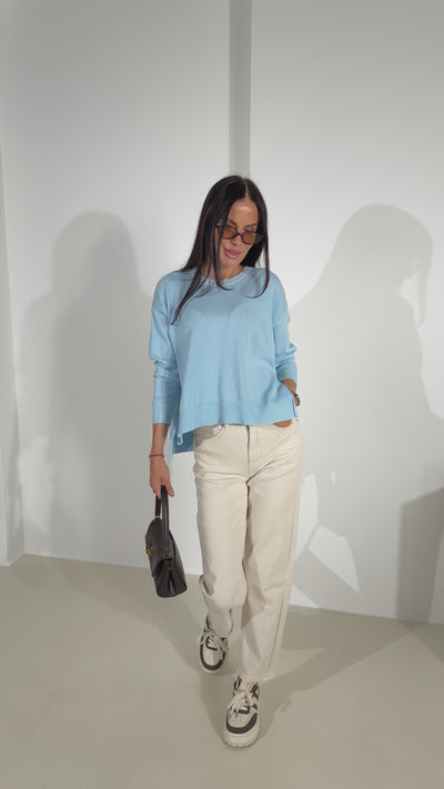 Zils adīts džemperis ar šķēlumiem sānos - 18197
