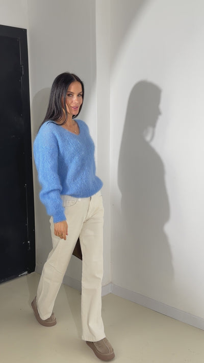 Zils mohēras džemperis ar "V" veida dekoltē - 17896