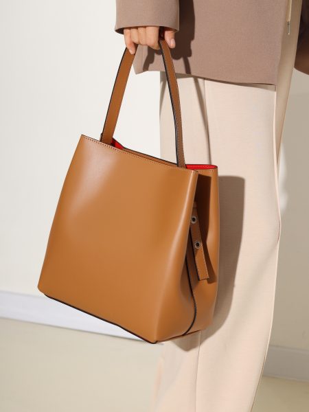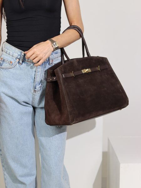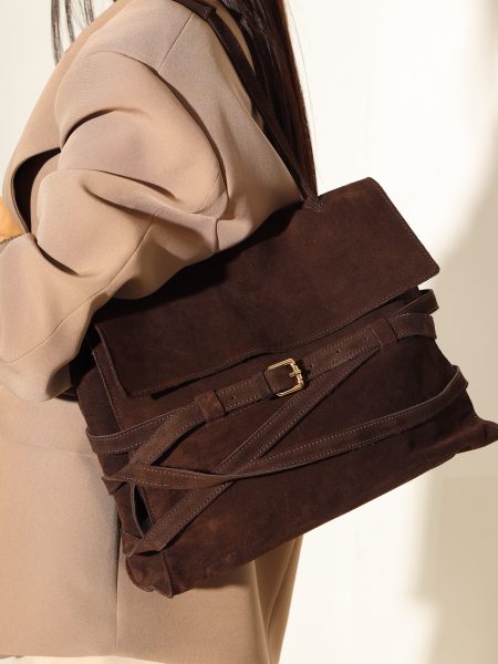 Šoko/brūna zamšādas soma ar jostu dekoru – 16390