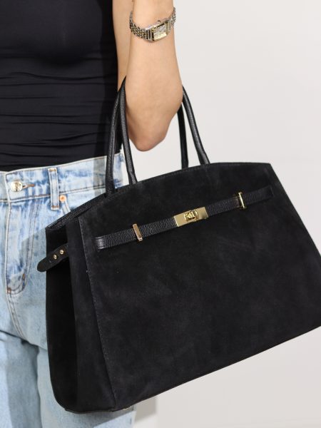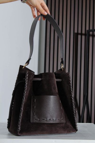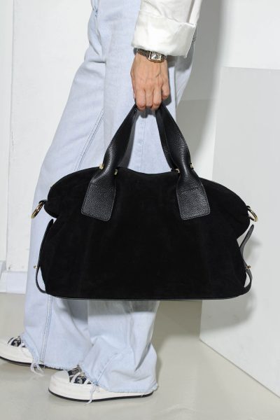 Melna, zamšādas soma ar savelkamu augšdaļu – 16077