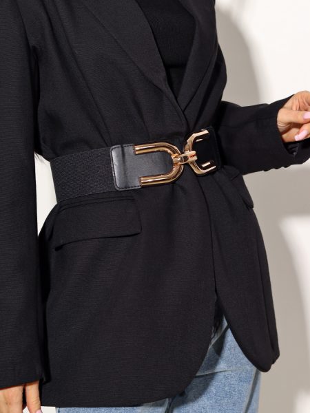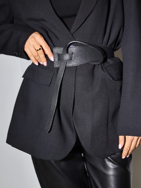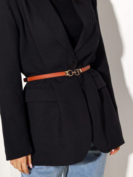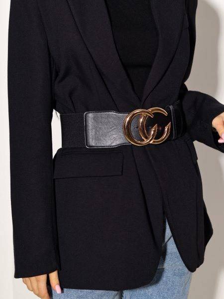 Melna smalka ādas josta ar zelta sprādzi – 13816