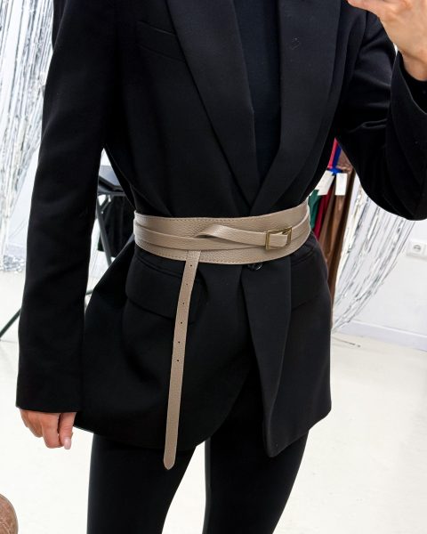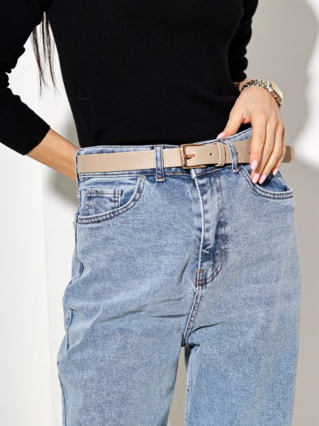 Bēša smalka ādas josta ar zelta sprādzi – 13896