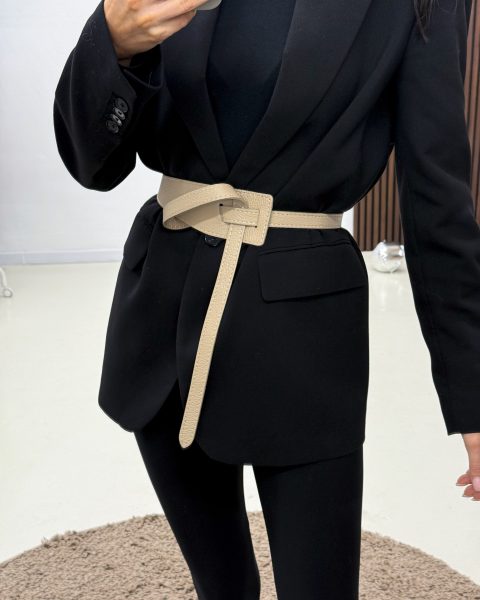 Bēša zamšādas regulējama josta ar zelta āķīša aizdari – 15768