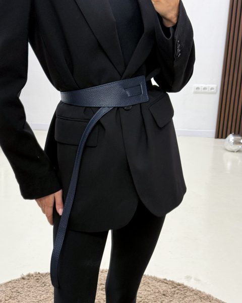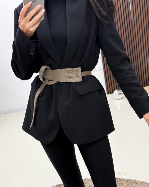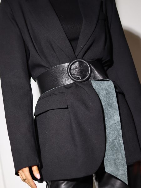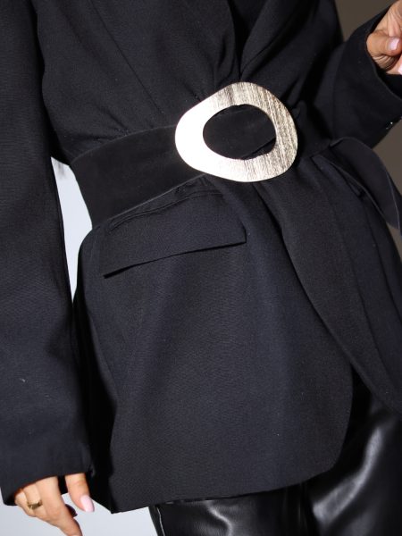 Melna zamšādas josta ar masīvu zelta krāsas sprādzi – 13689