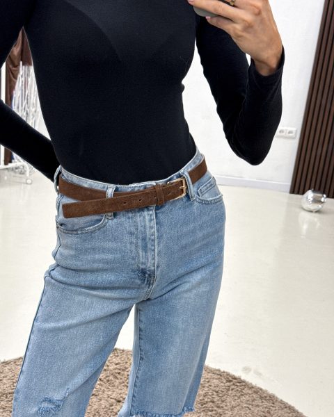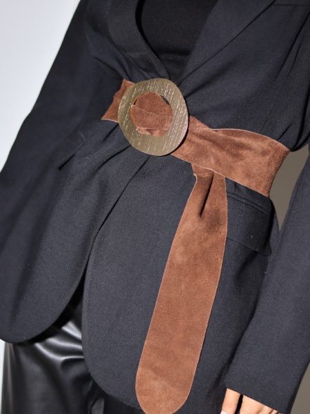 Brūna zamšādas josta ar masīvu zelta krāsas sprādzi – 13717