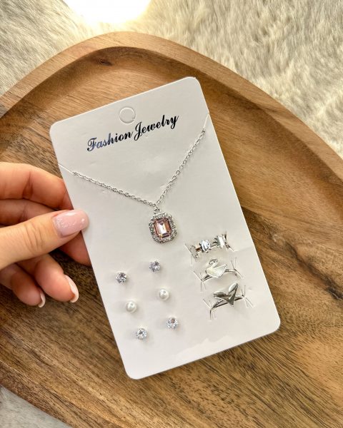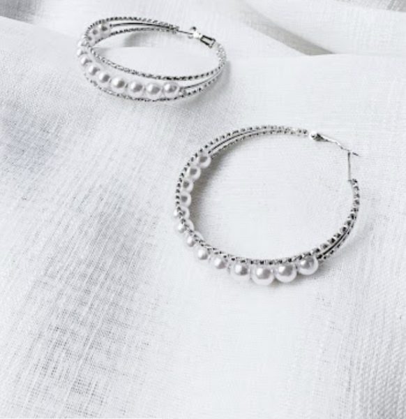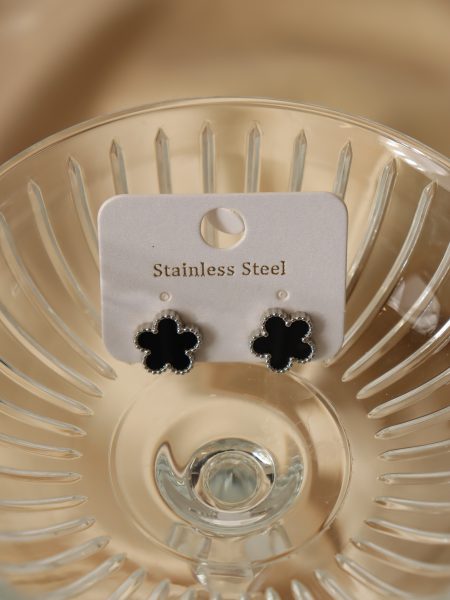 Melna, pieclapu zieda auskari ar sudraba akcentu – 17149
