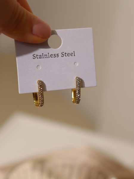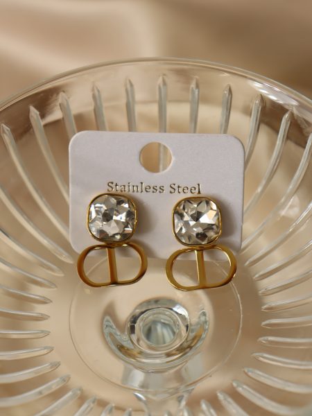 Zelta , kvadrāta forma auskari ar dimantiņiem – 17146