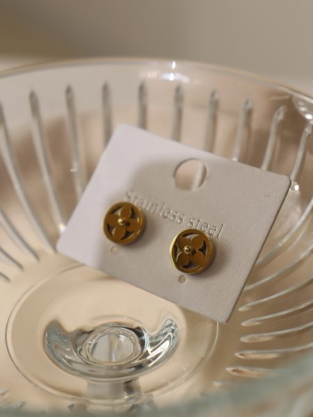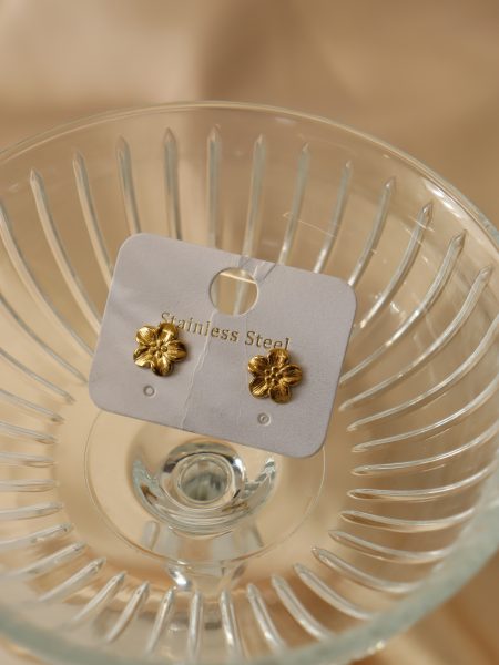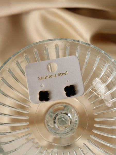 Zelta krāsas auskari “Ziediņš” ar melnu akcentu – 17139
