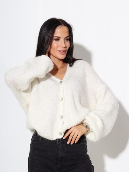 Balta mezgliņdzijas adījuma jaka, podziņu aizdare – 17513