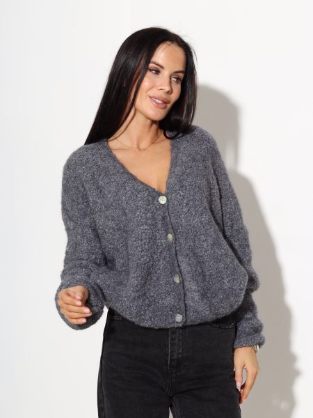 Pelēka mezgliņdzijas adījuma jaka, podziņu aizdare – 17516