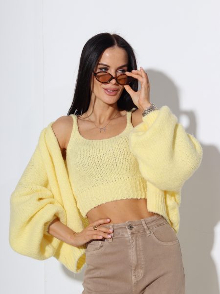 Dzeltena adījuma jaka+kroptops, vilna sastāvā – 16951