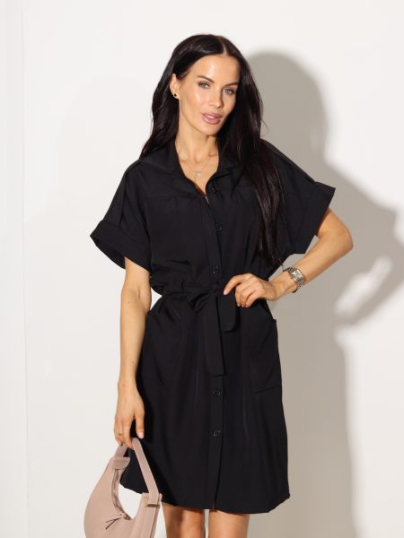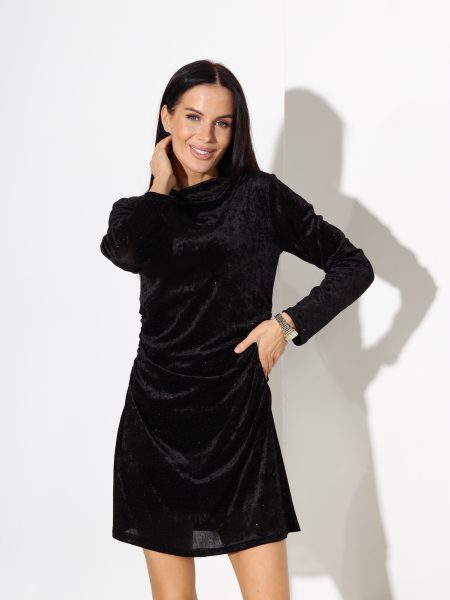Melna īsa samta kleita ar spīdumiņiem – 17746
