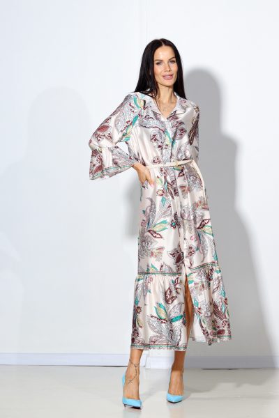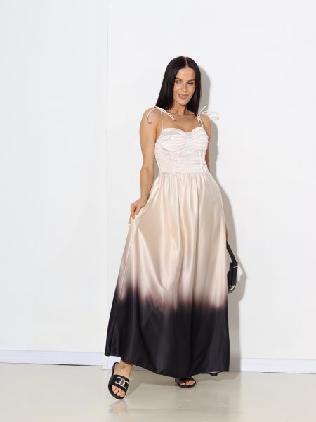 Brūna gara kleita ar savilkumu sānā un zelta furnitūras dekoru – 17562