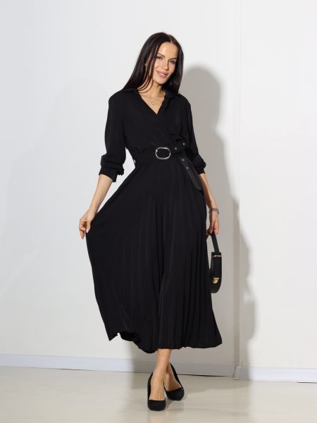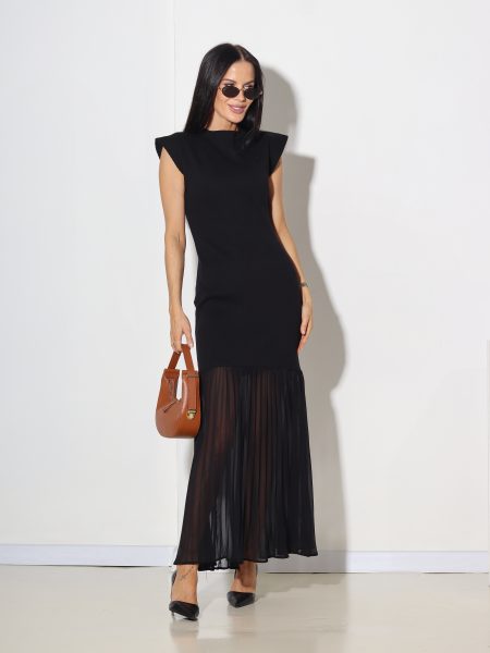 Melna gara kleita ar fliteriem un gofrētu apakšdaļu – 17661