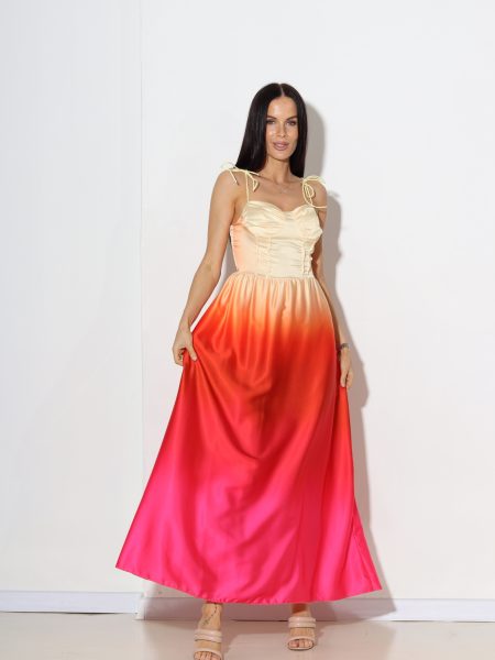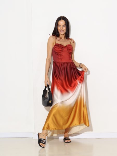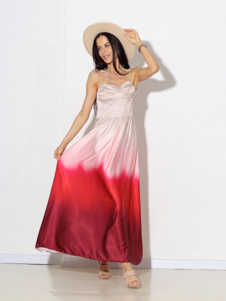 Sarkana gara kleita ar fliteriem un gofrētu apakšdaļu – 17677