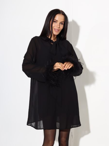 Melna gara samta auduma kleita uz smalkām lencītēm – 17655