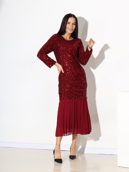 Sarkana midī kleita uz augumu ‘Mirdzumiņš’ – 17122