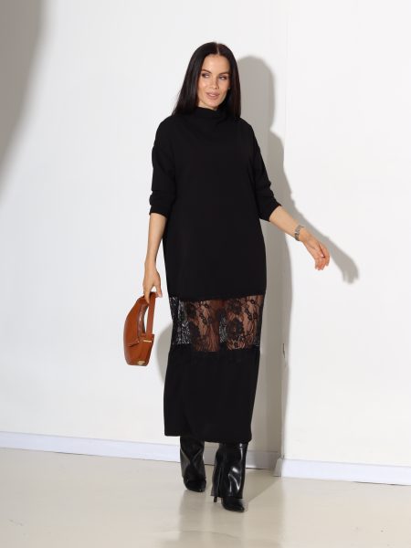 Melna gara kleita ar mežģīnes dekoru – 17538