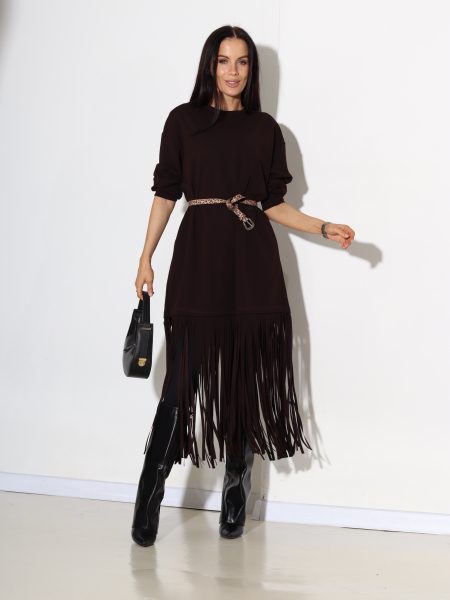 Brūna gara kleita ar mežģīnes dekoru – 17537