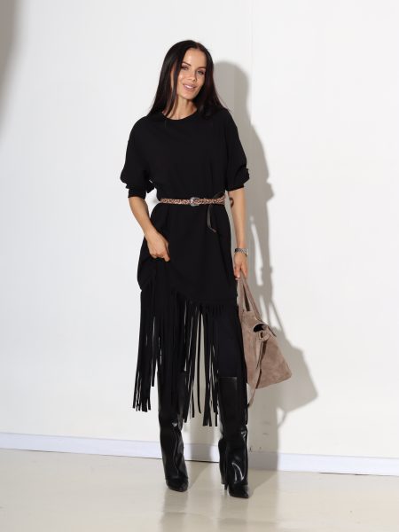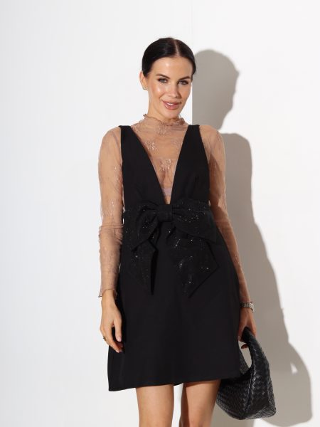 Melna, īsa kleita ar lielu banti priekšpusē – 17496