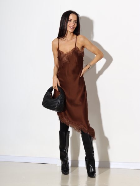Brūna samta kleita ar gliteriem un mežģīni – 17532