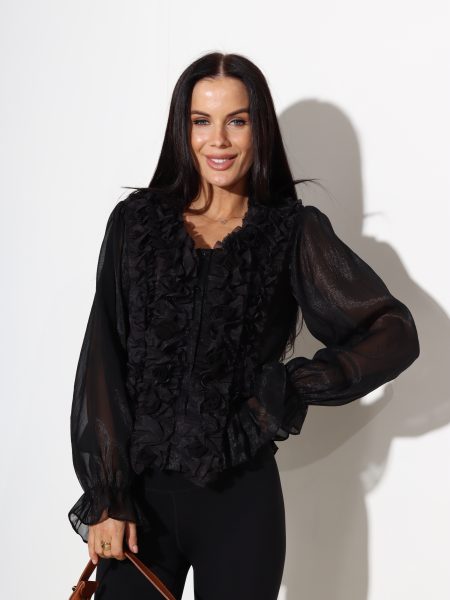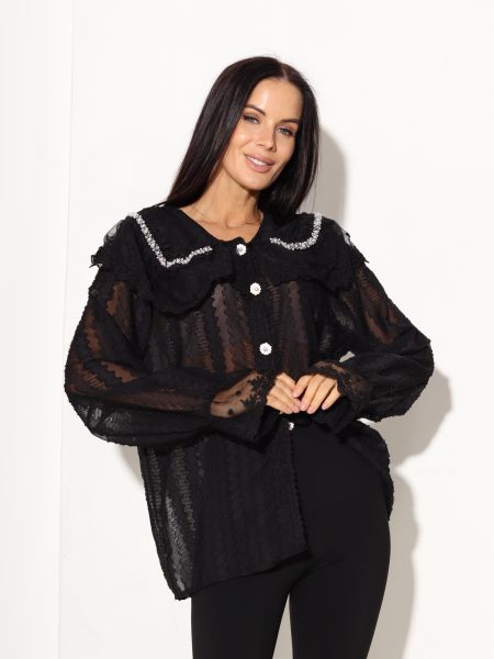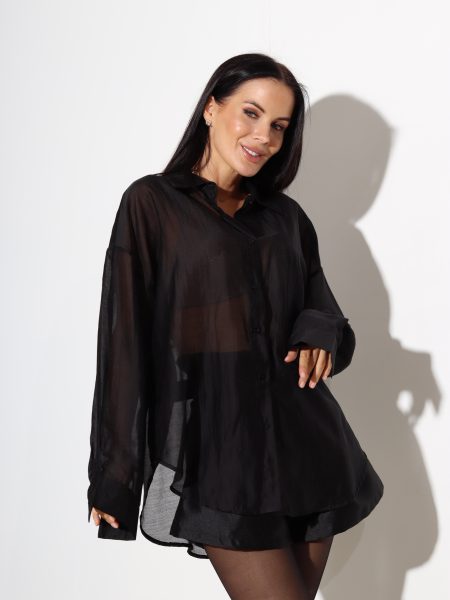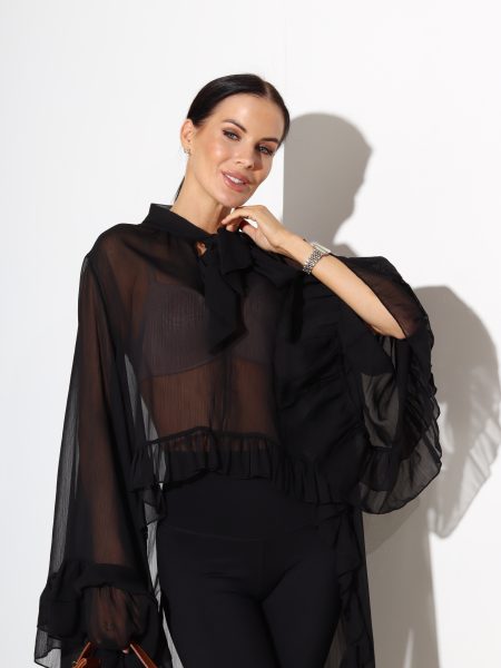 Melna blūze ar pagarinātu aizmuguri – 17499