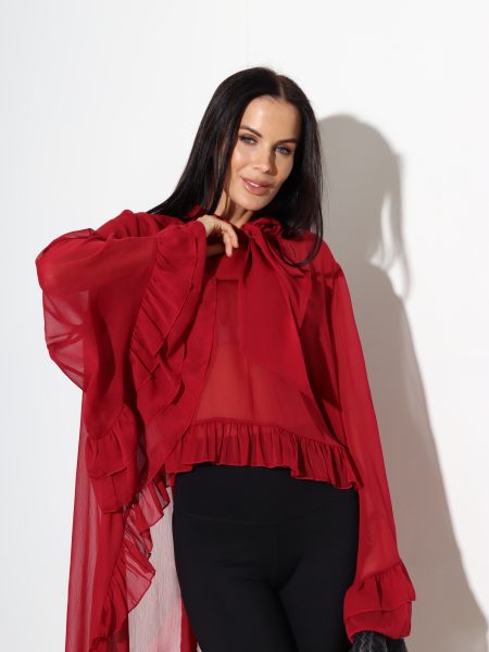 Sarkana blūze ar pagarinātu aizmuguri – 17498