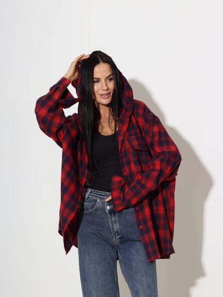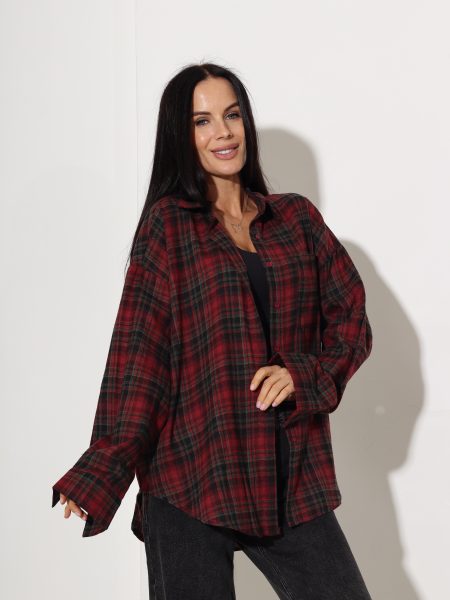 Sarkans + zaļš krūtains kokvilnas krekls – 16918