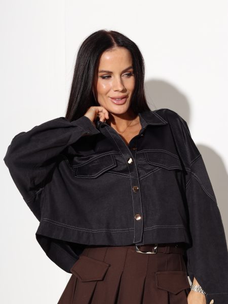 Melns saīsināts krekls/blūze, balta diedziņa šuvums – 17064