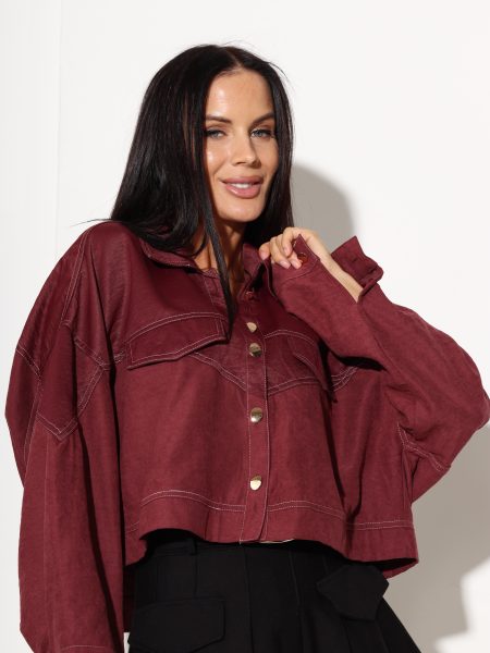 Bordo saīsināts krekls/blūze, balta diedziņa šuvums – 17065