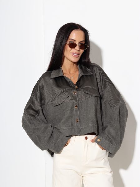 Hakī/ zaļš saīsināts krekls/blūze, balta diedziņa šuvums – 17063