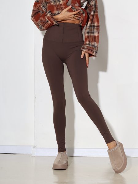Brūni, gluda materiāla legingi ar rāvējslēdzēju – 17023