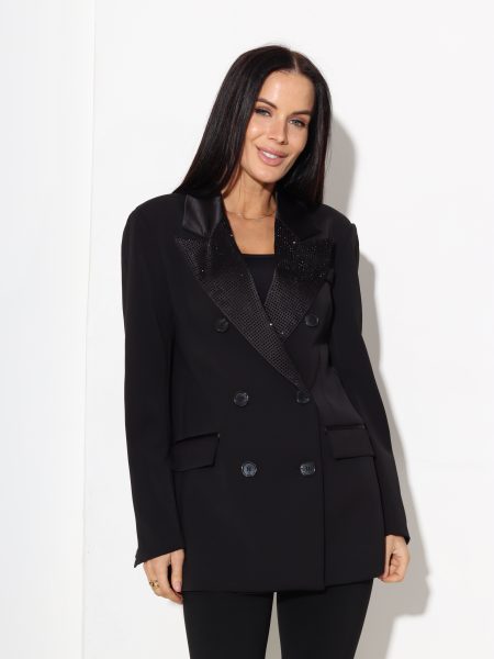 Melna, klasiska žakete ar mirdzošu atloku – 17393