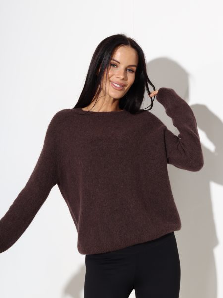 Brūns klasisks smalka adījuma alpakas džemperis – 17720